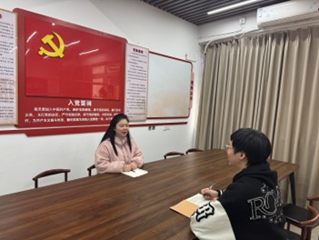 学生党支部二支部宣传委员唐夏与学生党员谈心谈话