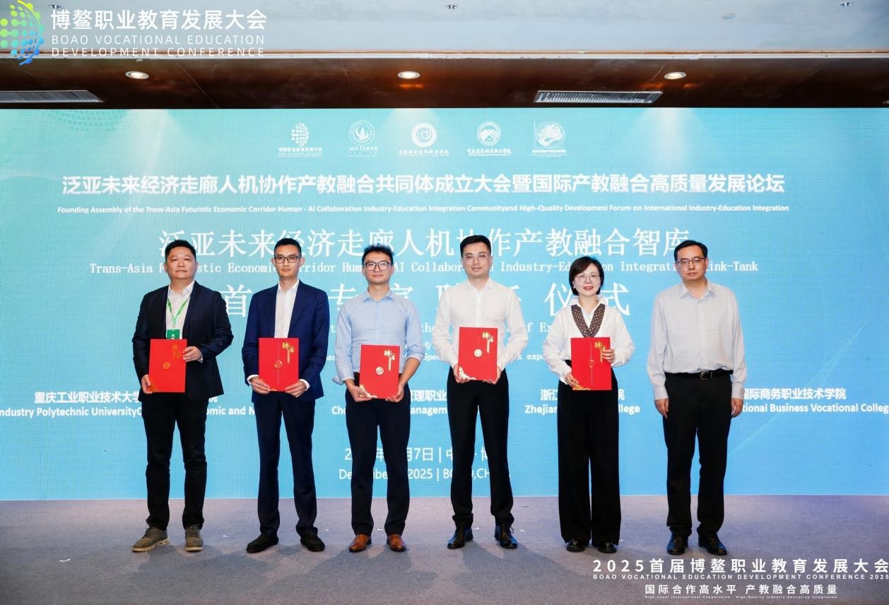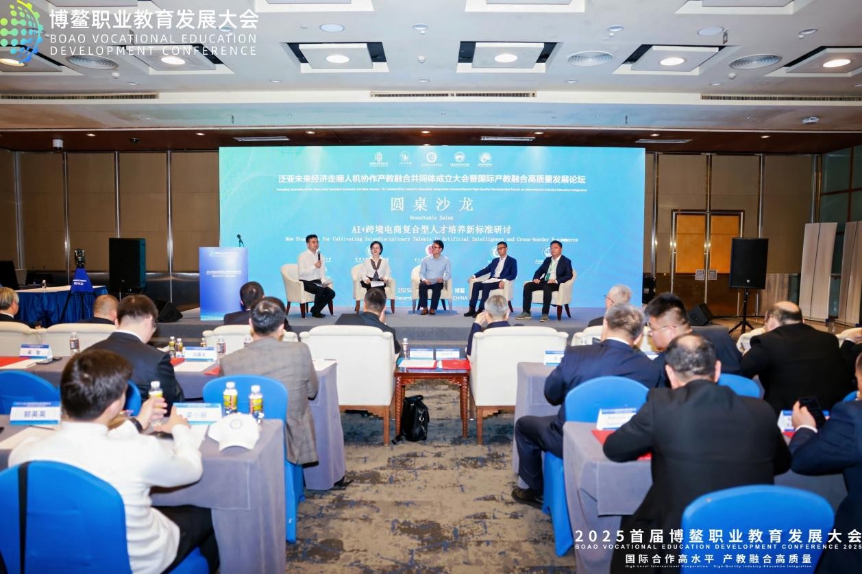 2025年12月5日至8日,2025首届博鳌职业教育发展大会在海南琼海博鳌亚洲论坛国际会议中心隆重举办。作为海南省重点支持培育会议,本次大会以“国际合作高水平,产教融合高质量”为主题,汇聚了全球职业教育领域的专家学者、院校代表与企业精英,共探职业教育国际化与产教融合创新路径。重庆工业职业技术大学经济与管理学院院长金渝琳、副院长李乐受邀参会,李乐副院长受邀主持了“泛亚未来经济走廊人机协作产教融合共同体成立大会暨国际产教融合高质量发展论坛”中的“AI+跨境电商复合型人才培养新标准研讨”沙龙专场,金渝琳院长在专场中分享了学校特色育人实践,为行业人才培养贡献渝校智慧。