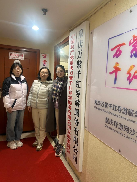 图2 教师团队在重庆万紫千红导游服务有限公司调研交流