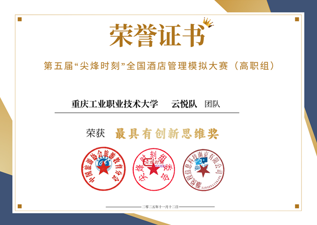 近日,由中国旅游协会旅游教育分会、灏悦程信息科技南京有限公司及尖烽时刻组委会联合主办的第五届“尖烽时刻”酒店管理模拟大赛(高职组)圆满收官。本次大赛吸引了全国22所院校48支团队、183名学生参赛,参赛队伍中包括了青岛酒店管理职业技术学院、浙江旅游职业学院等院校,我院学子与标杆院校同台竞技,收获良多。