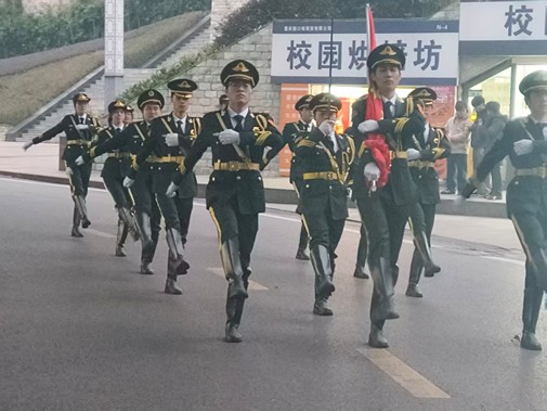 清晨,伴随着雄壮的《义勇军进行曲》,五星红旗在全体师生的注目中冉冉升起、迎风飘扬。大家肃立齐唱国歌,嘹亮的歌声承载着对祖国的赤诚热爱,激荡着新时代青年的使命担当。