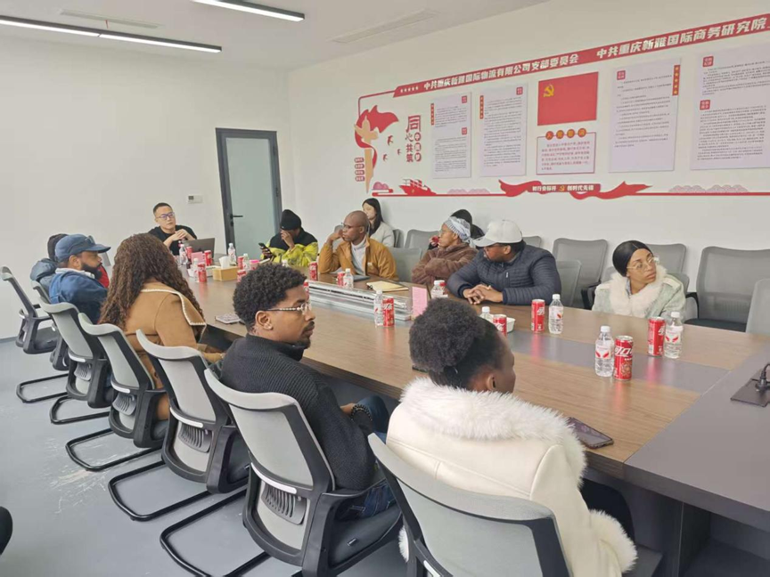 当天下午,南非青年企业家一行还参观访问了重庆新雅国际物流有限公司,公司是经国家商务部备案的一级国际货运代理企业,也是中国国际货运代理协会2022年度第一批国际货代物流行业AAA信用企业。公司在物流行业不断深耕发展,形成集国际货运代理、报关报检、普通货运、集装箱运输、城市配送、国际贸易、供应链管理、批发零售、跨境电商、自费出国留学中介服务、会议及展览服务、翻译服务等多领域、多元化发展为一体的综合性现代物流服务企业。陈安庆董事长致欢迎词并向南非青年企业家介绍了公司的发展情况,陈哲总经理介绍了公司的主营业务,并和南非青年企业家就跨境电商、资源共享、业务合作进行了轻松、愉快且深入的交流。