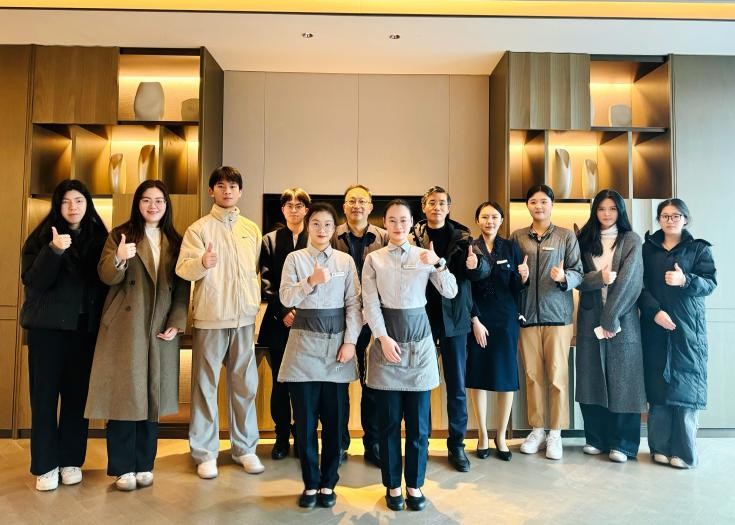 调研期间,秦传江副校长一行还与在该酒店实习的我校学生交流,详细了解他们的工作内容、生活情况及职业发展困惑。向同学们提出三点职业规划建议:一是立足实际 ,明确职业目标,做好长远规划;二是沉淀本领 ,把握实习机会,夯实专业技能;三是科学发展 ,关注行业趋势,提升综合素质。他鼓励同学们在实践中成长,努力成为行业骨干人才。
