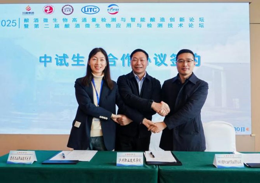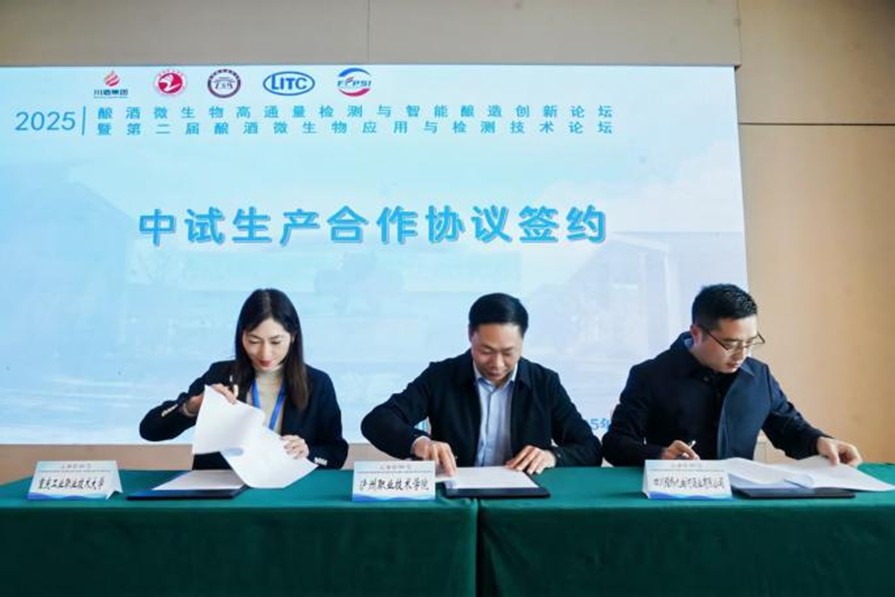 近日,在泸州举行的“2025酿酒微生物高通量检测与智能酿造创新论坛”上,我校与泸州职业技术学院、四川经纬九曲河酒业有限公司共同签署“楠木桩”高粱白酒中试生产项目技术开发委托合同。项目将构建完整的产业链体系,从酉阳土家族苗族自治县楠木乡红庄村乡村振兴发展的特色高粱种植入手,通过标准化生产流程和智慧物流系统,实现从原料到成品的全链条可追溯质量管控与品质提升。
